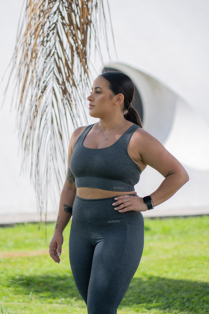 Tecido com alta elasticidade, toque macio e excelente ajuste ao corpo. Proporciona conforto, sustentação e liberdade de movimento, sendo ideal para peças fitness que exigem performance e durabilidade no dia a dia.